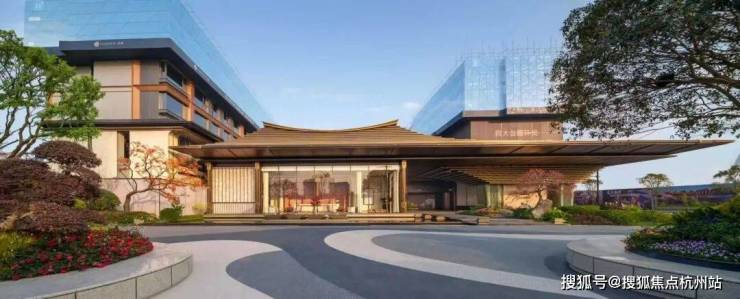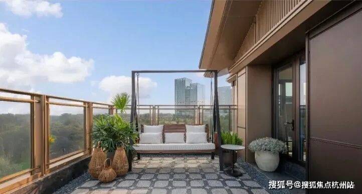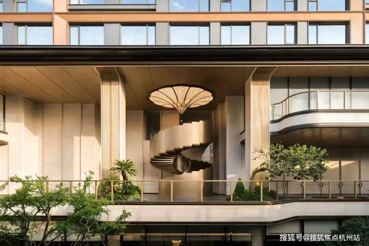 建筑风格方面,洋房采用诗意东方风格,外立面采用石材基座+三面大面铝板,搭配中式飞檐造型,与钱江潮涌奔腾之感相互辉映,在城市天际线勾勒出跃动的韵律。