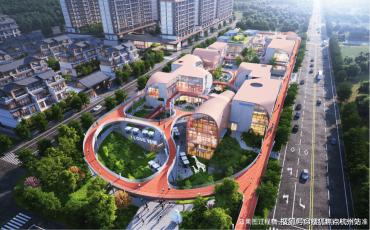 望潮的南侧,是建发代建的十字绿轴商业街区+运动公园(已开工),占地约4万方。以空中连廊生态纽带,巧妙串联起商业、运动公园、烟火美食街与主题市集。
