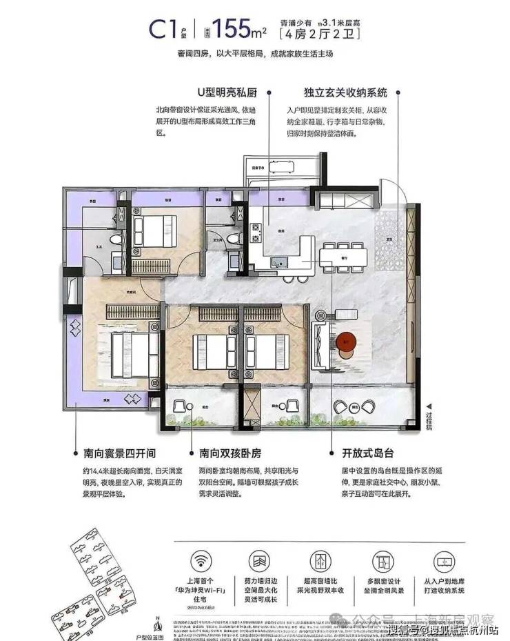 青浦唯一华为鸿蒙智家战略合作项目,华为全屋智能:项目重磅引入上海首个 华为坤灵 Wi-Fi 6 智慧入户,实现全屋信号无死角高速覆盖。搭载华为本地主机,数据在本地自主处理。尤为值得一提的是,华为全屋PLC黑科技,真正实现了断网不断联。