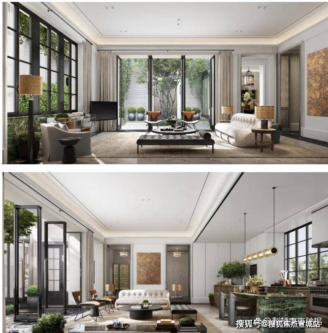 风貌典藏型(220-503㎡联排 / 合院):作为虹口绝版低密产品,容积率仅 1.1,独门独户设计附赠 40-150㎡私家庭院与地下双层空间。260㎡联排采用 “前院 - 中庭 - 露台” 传统布局,中庭天井让地下室采光提升 60%;503㎡合院实现 “一宅藏九院”,地下层可改造为恒温酒窖或藏品馆,满足高净值家庭的收藏与社交需求。