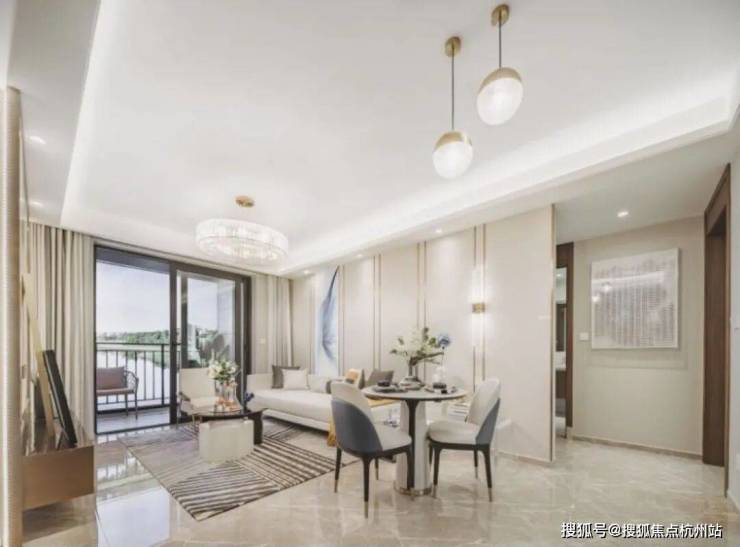 客餐厨一体化设计,外连景观阳台,保证室内充足的采光与通风,无隔断的设计,增加了空间使用率,也满足了家庭成员之间更多的互动与交流需求。