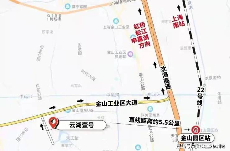 轨交方面,项目离轨交22号线金山园区站直线距离约5.5km,公交卡直接上车,可以去往上海南站,再坐三站地铁即到徐家汇。