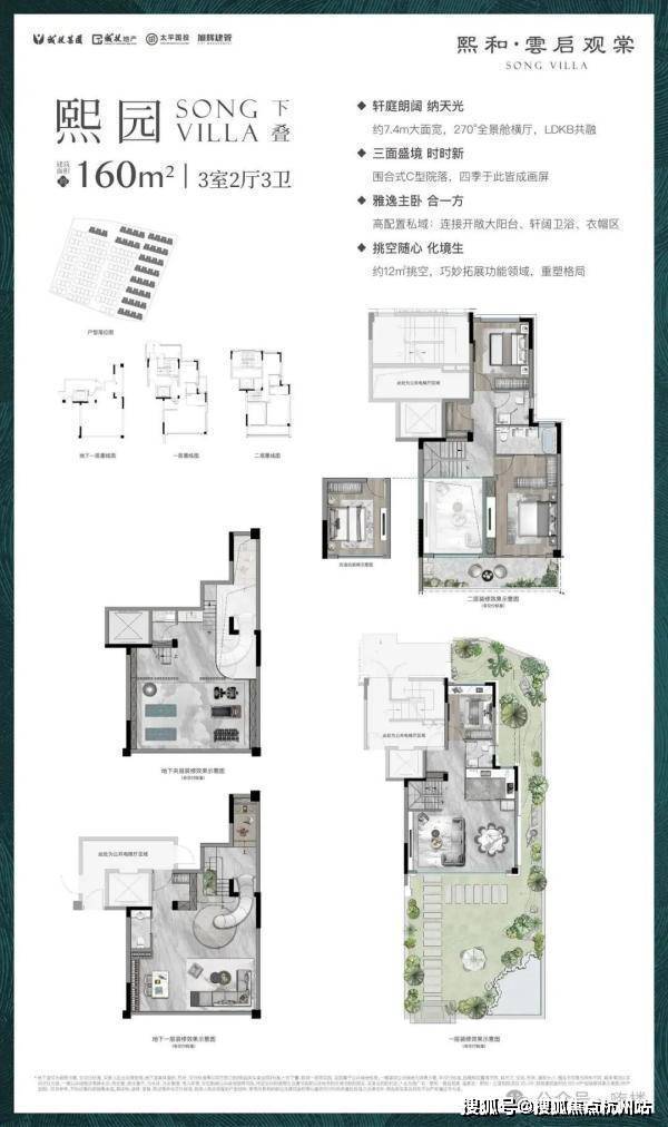 叠墅产品(4层真叠墅): 下叠(约160㎡): 可做4房3卫,面宽约7.4米。赠送客厅挑高、围合式的C型院落以及地下空间,私密性与趣味性兼得。