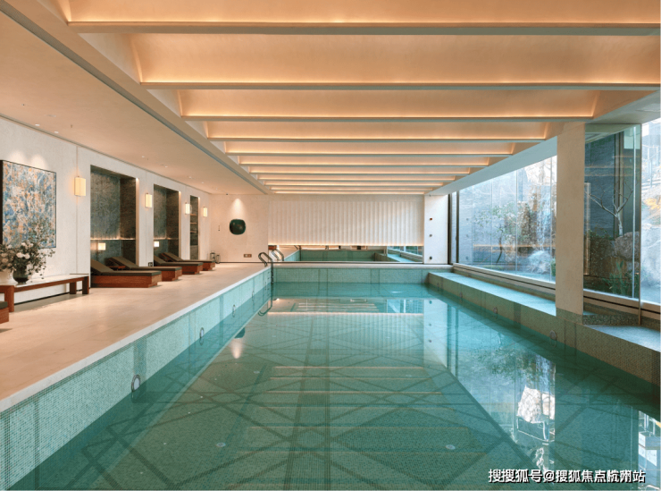 恒温泳池:采用全景落地玻璃墙,巧妙消融了室内与自然的界限。畅游其间,庭院山石如天然屏风倒映眼前,仿佛在自然山水间徜徉。