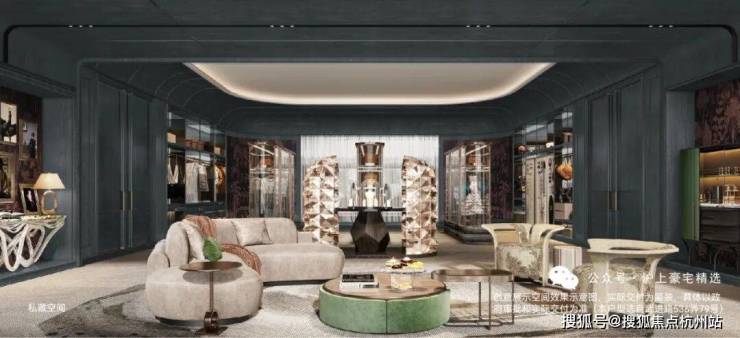 • 从容抵达步入地下会客厅,转角衣帽间换一身便服,轻松切换身份情绪