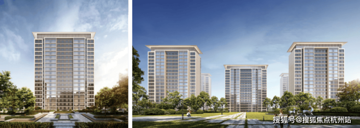 主题风格:外立面采用经典时尚现代主义风格,通过温和的色彩搭配、简练的横向线条、黄金比例的立面比例、极简抽象的建筑符号、建筑顶部的飘板,呈现一个现代风格和艺术气质结合的高品质社区。
