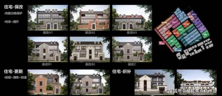 社区内部尊重原有肌理,静安里妥善留存更新原有不同风格建筑,通过保护修缮、保留改造、更新改建、织补新建四大更新手法,打造了10种建筑立面风格,让各个时代建筑和谐共存