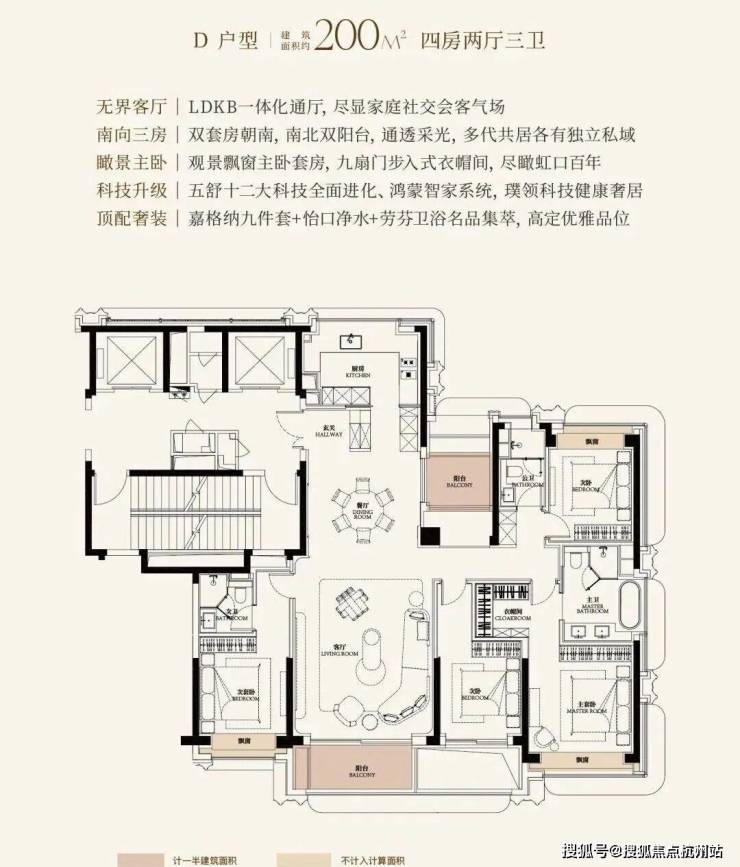 一梯一户、铸铝子母门、华为智能家居自不必多说,金茂通过双主卧套房、独立家政间等设计,完美平衡了家庭的团聚需求与个人隐私