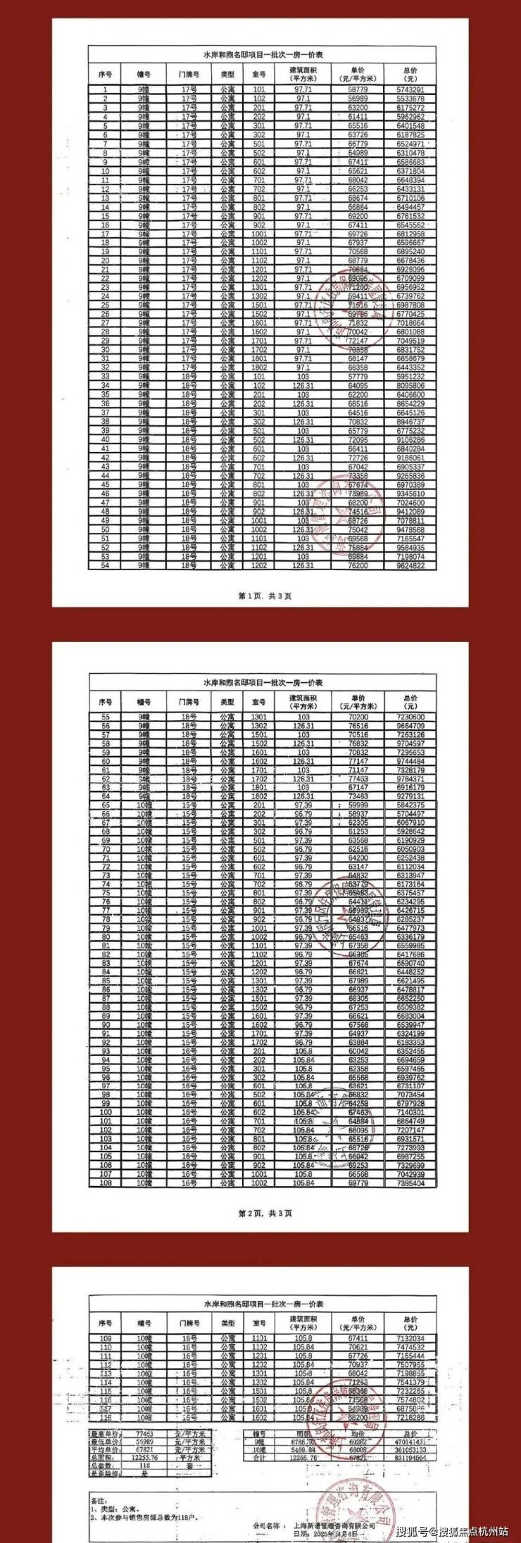 附一房一价表: