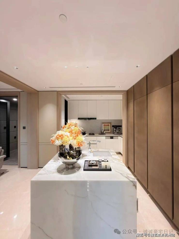 从选材来看,各种奢侈品级石材随处可见,比如与北京钓鱼台国宾馆同款的意大利进口鱼肚白石材,造价高达约2万/㎡,被誉为“世界上最贵的石材之一”!