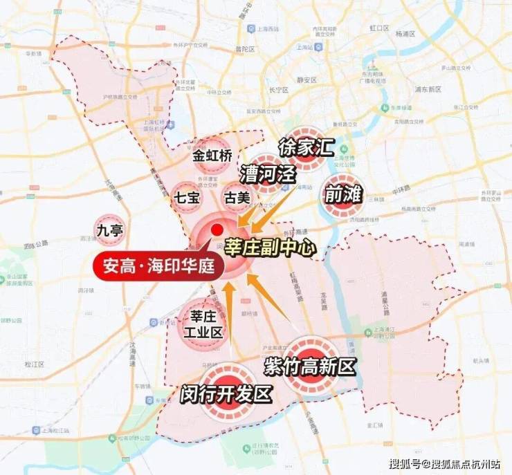 但若你从地图上看,莘庄恰好就处在“心脏”地带,漕河泾、七宝、莘庄工业区、航天城、闵开发、紫竹就像众星拱月般将莘庄环绕在中间。