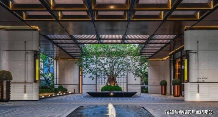 社区入口,百米酒店式落客门庭、超60年树龄铁冬青打造的 “大树聚场” 、潘多拉发光奢石拼花的 “躺平水院” ,是家人休憩、邻里小聚的好去处;