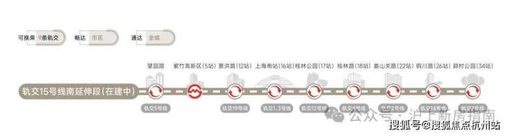 轨交网络:5号线、15号线南延伸段(在建中)、市域嘉闵线南延伸段(规划中)、沪乍杭高铁(规划中)及南枫线(在建中)