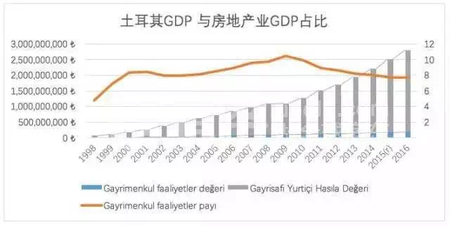 房地产也算是土耳其的支柱产业,自1998年以来,土耳其房地产业基本呈现连年稳步增长态势,长期占国内生产总值的9%左右。