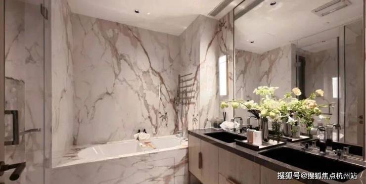选材来看,各种奢侈品级石材随处可见,比如与 北京钓鱼台国宾馆同款的意大利进口鱼肚白石材 ,被誉为 “世界上最贵的石材之一”