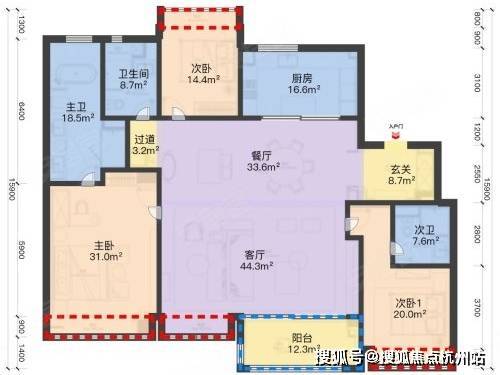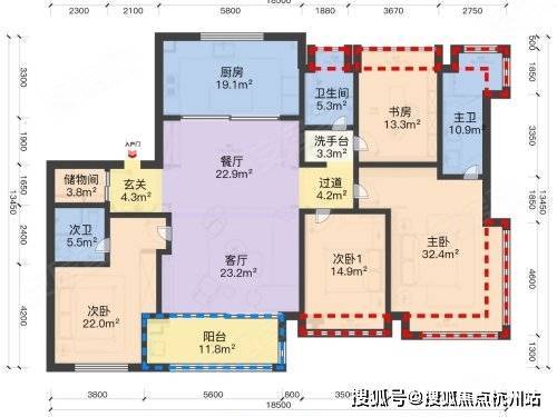 建面约 128㎡ 三房两厅两卫(刚改首选款)