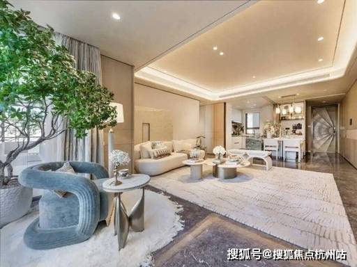 210㎡样板间:超级横厅 + 环幕落地窗,将68 万㎡大宁公园全景引入室内。四套房设计 + 中西双厨 + 超大收纳,一步到位满足顶豪家庭全需求。