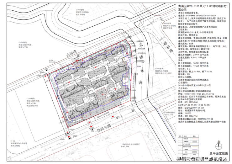 据青浦区官网显示,宝业位于青浦区QPPO-0101单元的17-05地块,规划设计方案已经公示。