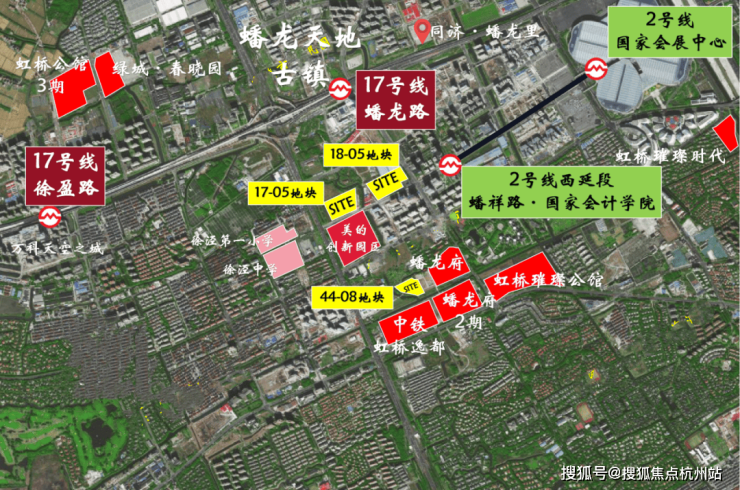 宝业拿下的徐泾17-05地块,位于2号线西延伸线的蟠祥路·国家会计学院站附近。