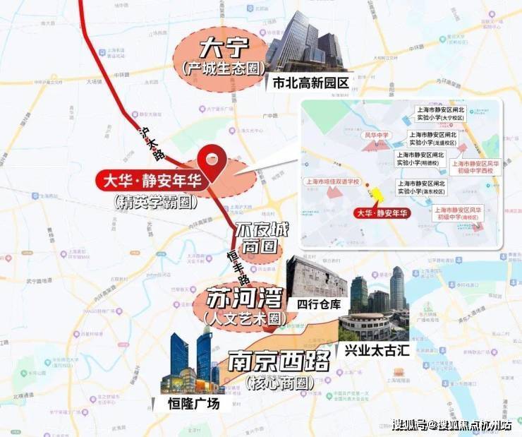 2、静安学霸圈,占领教育资源高地。周边有闸北实验小学和风华初级中学等,双一梯队名校环伺。