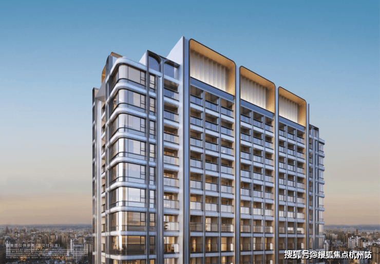 大华·静安年华将新古典与邬达克美学融合,借鉴了外滩华尔道夫、国际饭店等经典海派建筑的曲线、拱形、色彩等元素,并通过现代创新艺术材料,将之呈现在这座高层的外立面上。