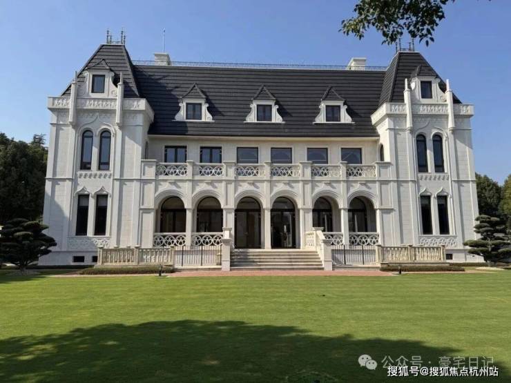 浅米白石材立面,搭配深灰坡屋顶,经典的老虎窗与雕花栏杆,复刻着法国贵族的仪式感。