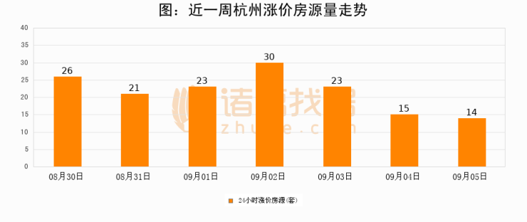 根据诸葛找房数据显示,杭州24小时涨价房源量为14套,较09月04日减少1套,环比下降6.7%。与此同时,涨价房源占比小幅回落,对于购房者来说是一个入市窗口期,购房者可抓住时机入市。