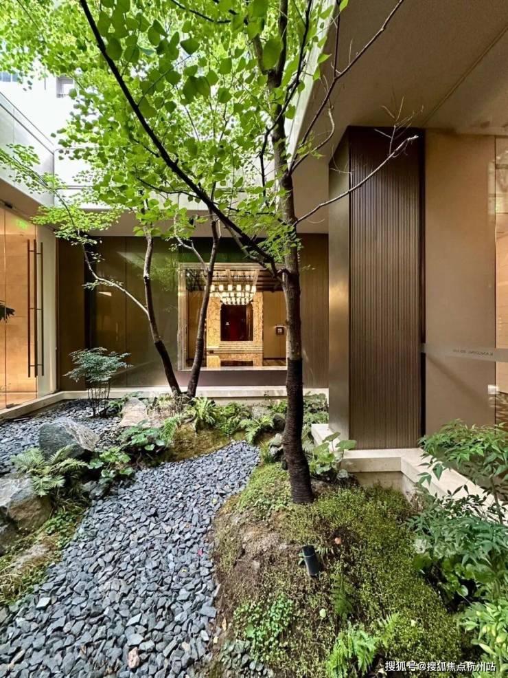 由风雨连廊串起游园式的步行回家路线,搭配景观绿植、水景设计,散落几处户外悬浮客厅~