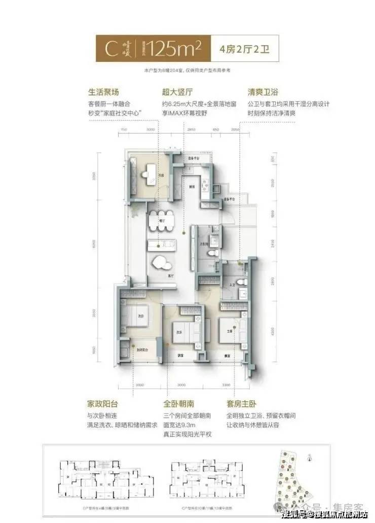 建面约139㎡南向四开间,引阳光肆意倾洒, LDK一体化宽厅,打破空间隔阂,成为家人互动、朋友欢聚的核心场域, 餐厨开放式设计,让烹饪不再孤单, 自定义X空间,实现“不为人生设限”, 次卧家政阳台,兼顾实用与观景, 约3.6米奢阔主卧,妥帖安放身心, 精细化收纳,生活井然有序......