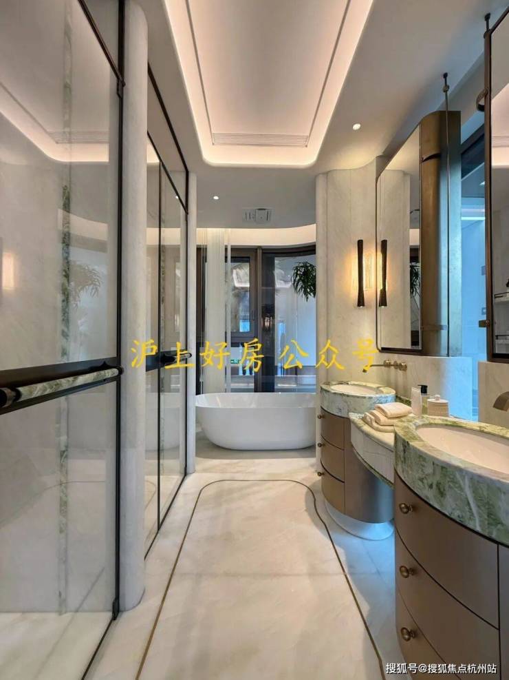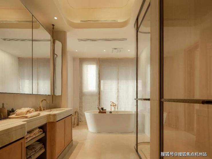 再加上双台盆、浴缸、马桶、淋浴的豪华四件套,把顶豪的尊崇感渗透到每一个日常场景。