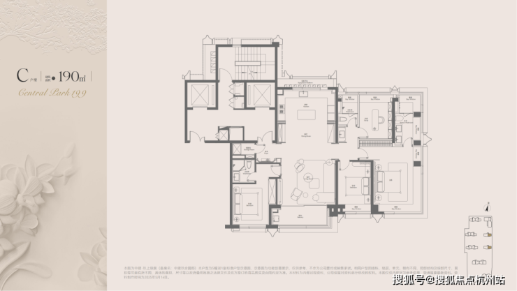 设计为三房,两间为套房,北次卧亦接近套房配置,尊崇感十足。超大南向面宽与巨型横厅赋予空间极高灵活性,可适配书房、瑜伽室等多重场景。
