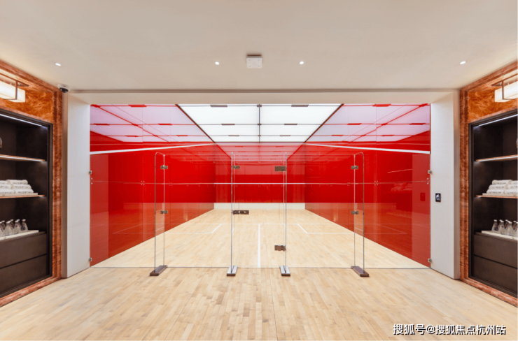 壁球馆用鲜亮的米兰红石材作为背景,营造非常时尚的运动风。