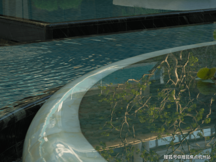 穿过礼仪之门,步入下沉庭院,仿佛进入了一座露天的现代艺术馆。设计概念“只此西溪,住进江南”,在此处被演绎为一种极具国际审美的“几何景观”。设计并未追求充满泥土气息的“野奢”,而是将西溪湿地“水网纵横、绿岛漂浮”的肌理,转译为干净利落的几何切面。这是一个“立体会所”的户外延伸。