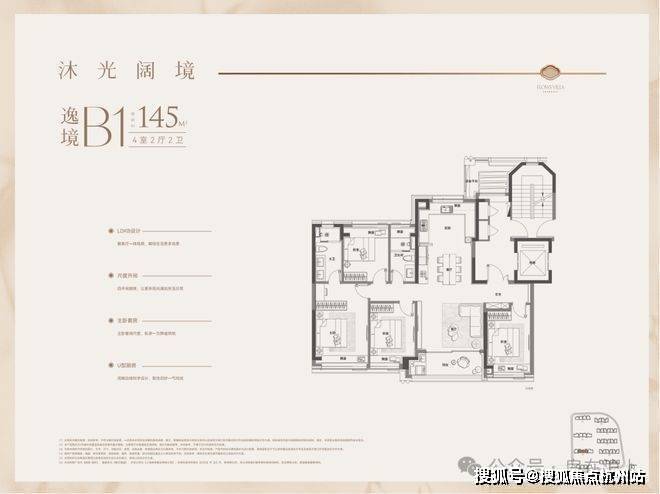 绿城逸庐售楼处电话400-887-5663户型特 点:4开 间朝南,LDK一体化设计,南北通透。客厅面宽达4.3米,外接4.8米长阳台,采光通风俱佳。主卧带270°转角飘窗,主卫也有飘窗赠送。全屋飘窗设计,独立电梯厅,私密性与尊享感强。