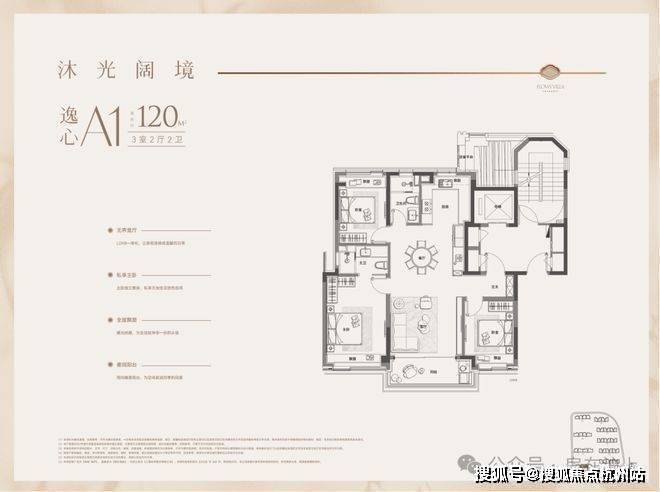 绿城逸庐售楼处电话400-887-5663户型特 点:边套 户型,3开间朝南,方正格局。客餐厅一体化设计,餐厅空间宽敞,客厅进深较短但可通过与阳台连通优化空间感。全屋飘窗设计,边套南北卧室为270°转角飘窗,采光充足。独立电梯厅约7-8㎡,可改造为玄关或收纳空间。