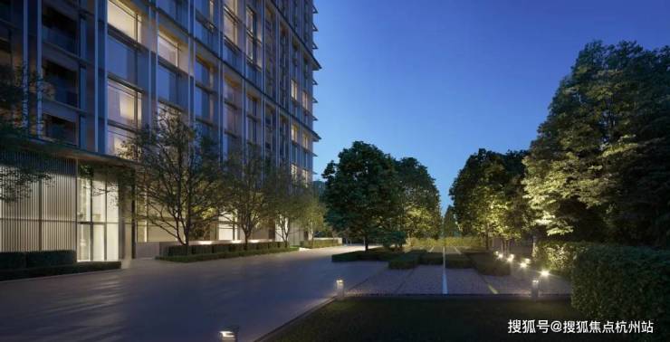 景观设计方面,保利世博天悦采用 引江入园、以水带路 的手法,将滨江舒阔的国际生活平移到社区内,打造约 6万㎡景观秘境 ,媲美全球奢华酒店。采用大面积的留白和现代禅意的表现手法,呈现开阔舒展的质感。