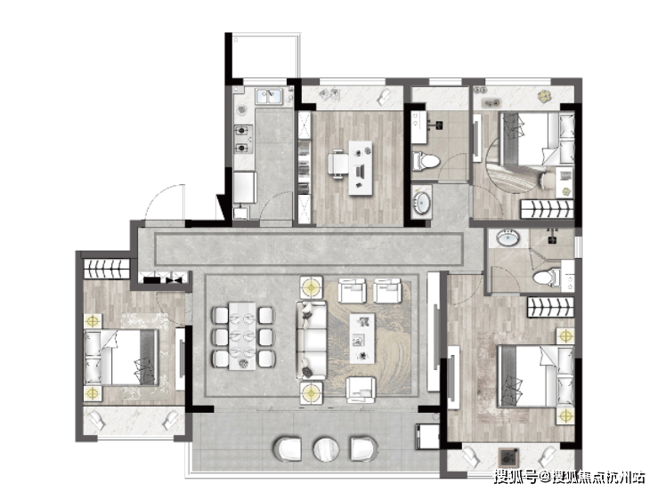 客餐厨流畅联动,主卧书房静谧私藏