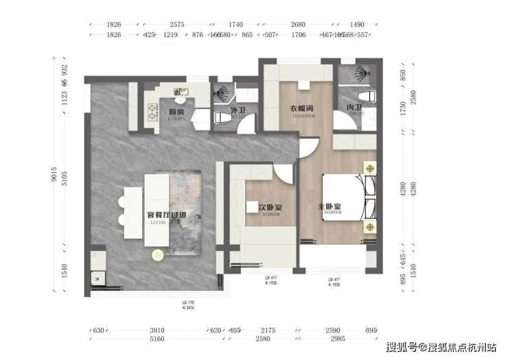 ❸. 主卧配套独立衣帽间+内卫,实现套房级私密感,次卧功能完整,空间利用率更高。