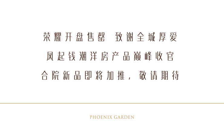 时间总是在不经意间推动一切往前,在过程中沉淀无数美好。从2019年11月首开到2020年5月25日洋房大宅收官,历时7个月,凤起钱潮洋房大宅,以本次开盘即罄的传奇之姿,优雅谢幕。
