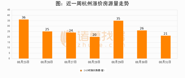 根据诸葛找房数据显示,杭州24小时涨价房源量为21套,较08月30日减少5套,环比下降19.2%。与此同时,涨价房源占比小幅回落,对于购房者来说是一个入市窗口期,购房者可抓住时机入市。