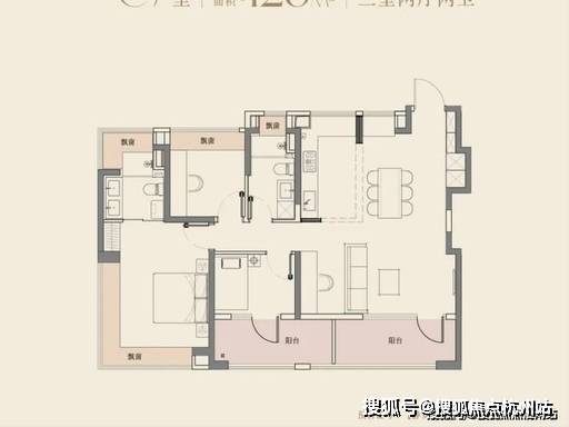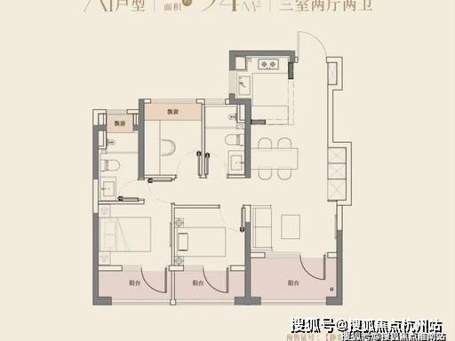 ② 建面约 106㎡ 三房两厅两卫(明星户型)