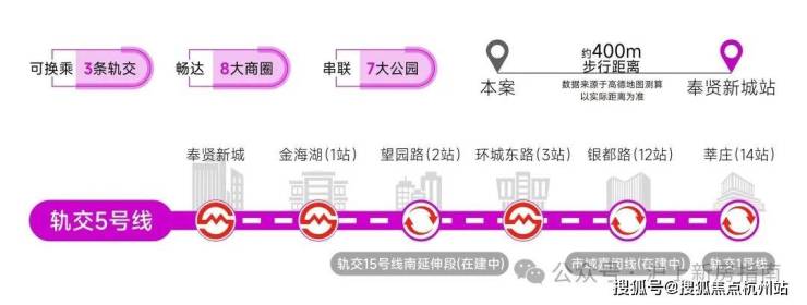 轨交网络:5号线、15号线南延伸段(在建中)、市域 嘉闵线 南延伸段(规划中)、沪乍杭高铁(规划中)及南枫线(在建中)