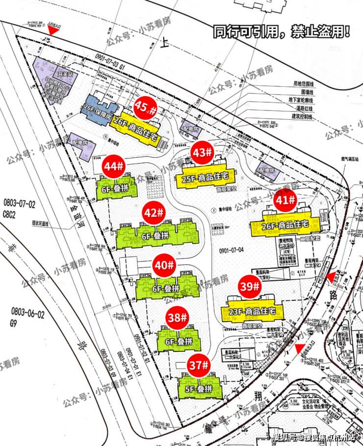 根据项目规划设计方案, 拟建11幢26层高层住宅、1幢25层高层住宅、2幢23层高层住宅、11幢6层多层住宅、5幢5层多层住宅, 以及配套公建用房:12幢1层开关站、3幢垃圾房、4幢1层配套用房、2幢2层配套用房。