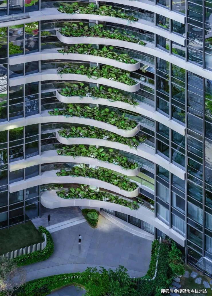 景观设计:入口景观及裙房屋顶花园打造双花园,以“钱塘江”“西湖”为设计灵感,提炼出“浪潮”“茶田”“茶花”为主题的景观元素融入形成艺术张力与场地情怀的融合。打造出赏景畅谈式私家花园,惬意的休闲空间放松静懿的生活境界。