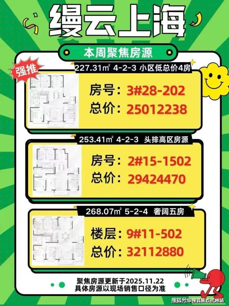 最新消息,缦云上海 江景房也凉了!112席建面约201-253㎡大平层直接认购中,均价12.1万/㎡!最新一房一价表!目前还有少量高层江景房在售,直接认购,项目三期已过会24年.7.13开启认购啦。7.25就已开盘,少量房源直接认购!