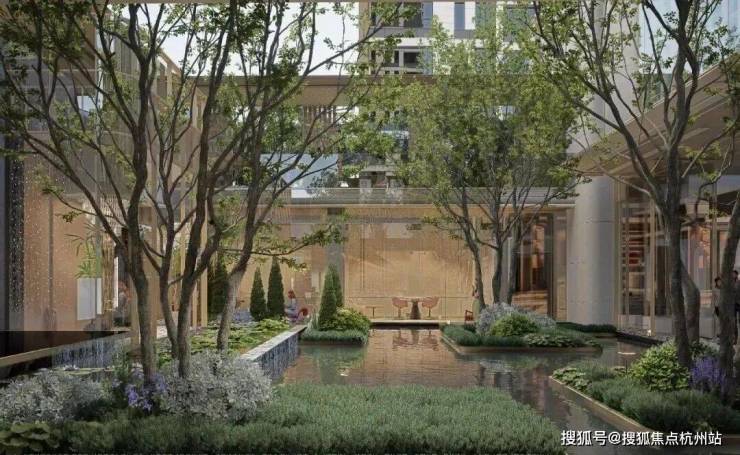 向城市让渡一些开放空间,以前街后河、约12000m滨水公园(代建)等一体化柔性边界,打造「外揽城市绿肺,内藏森境天地」公园住区,让繁华都市与静谧生活自然过渡。