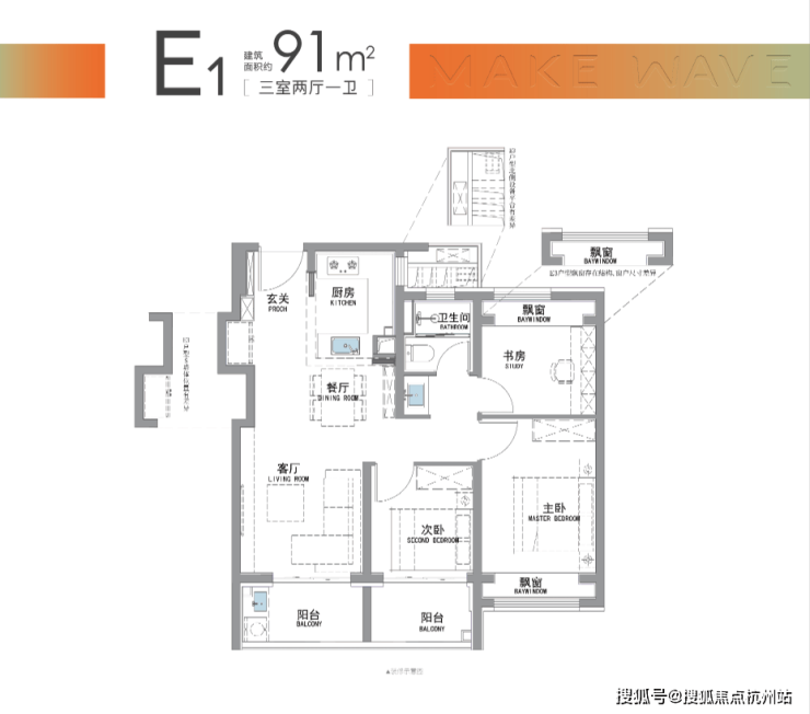 “南向双阳台+南北双飘窗”,构筑真3房户型!