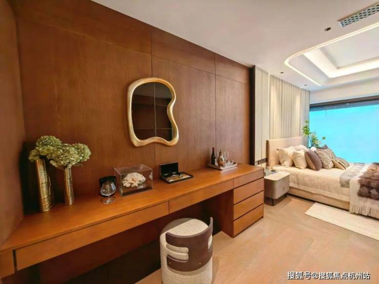豪华主卧套房设计(户型为全套房设计),该户型位于南塔高区,大横厅设计,明亮、通透,南向俯瞰风貌别墅区,视野开阔。客餐厅南北分布,动静合理,超大家政空间满足高端居家生活及收纳需求。