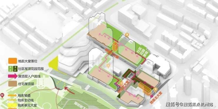垂直生态体系:1-3层规划商业,3层以上为住宅,商业与住宅之间嵌入近6100㎡“X空间”,连接住宅大堂、会所、架空层和高线公园,打造独特的垂直绿化体系,实现商业与居住的无缝衔接。