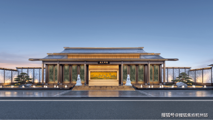 金山罕有双主门制,东门规制更显恢弘。入门,《蓬莱仙境》非遗漆画与西区山河遥相呼应,烟波浩渺间,藏风聚气,基业长青之意境悠然而生。
